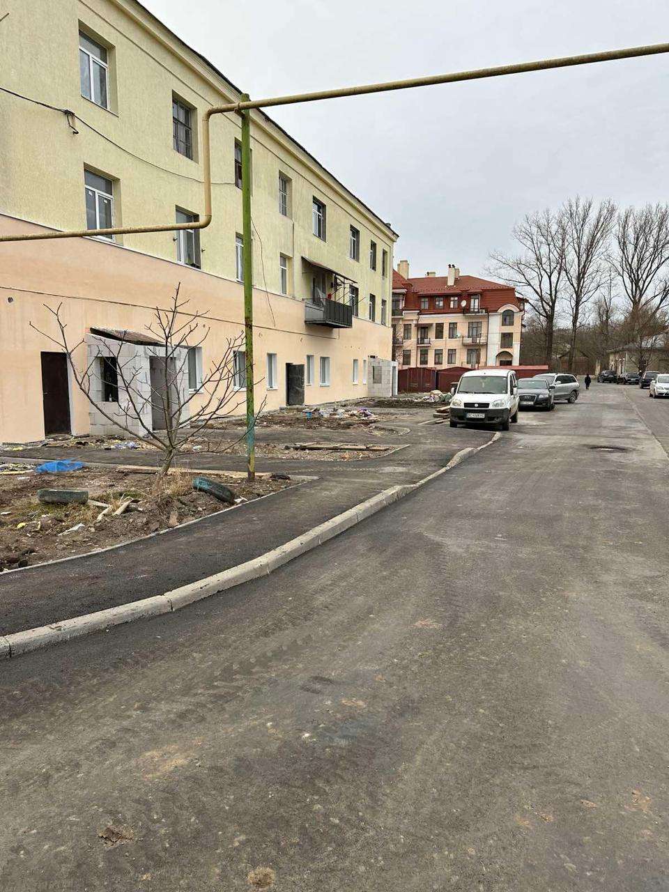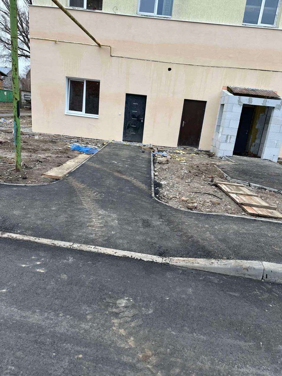 Будівництво 9 квартир на першому поверсі будівлі: розробка та фінансування проектної документації, демонтажні роботи, вивезення будівельного сміття, підведення та розпуск комунікацій, улаштування підлоги, стін та стель з подальшим оздобленням, встановлення міжкімнатних та вхідних дверей, меблювання під ключ, ремонт вхідної групи, благоустрій території.